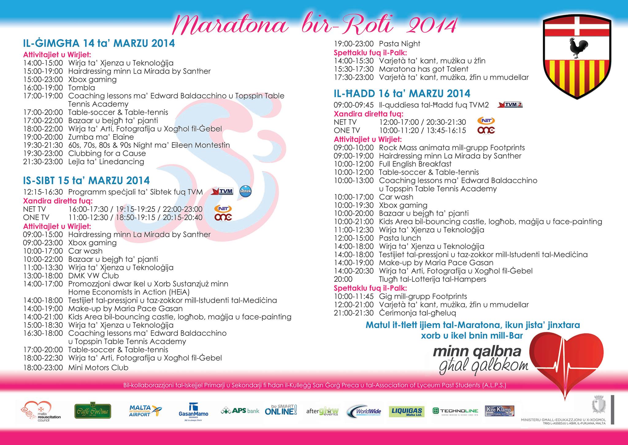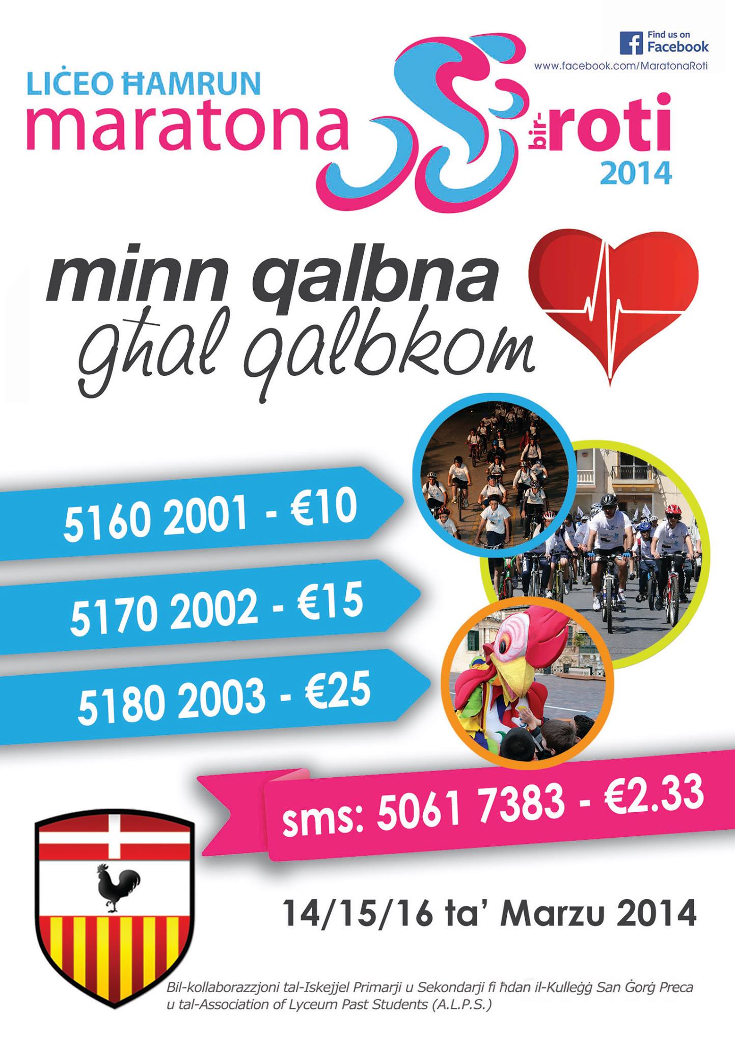 Il-Kunsill tal-istudenti ser jorganizza Yogurt Day għall-istudenti tal-Year 1 sal-Year 6, b’risq il-Maratona bir-Roti. Il-yogurt ser jiġi ġentilment offrut lilna minn Alf. Mizzi & Sons. Din ser issir nhar il-Ħamis 13 ta’ Marzu 2014. Inħeġġukom sabiex tkunu ġenerużi u tibagħtu d-donazzjoni tagħkom. Bil-flus li jinġabru, il-Liċeo tal-Ħamrun li qed jorganizza din l-attivita`, ser jagħti donazzjoni ta’ Automatic External Defibrillator anke lill-iskola tas-Siġġiewi. Dan hu apparat importanti ħafna f’każ li xi ħadd tiqaflu qalbu.