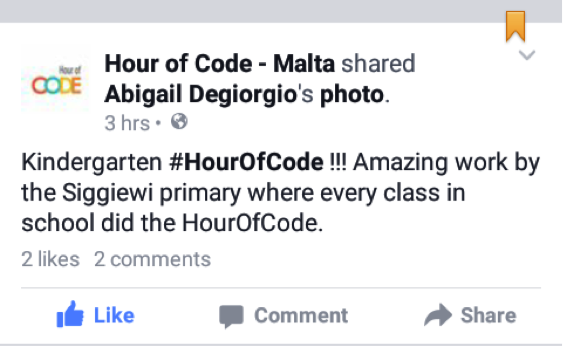 Nhar il-Ġimgħa, 11 ta’ Diċembru l-iskola tagħna pparteċipat fl-Hour of Code, attivita’ edukattiva fejn studenti minn madwar id-dinja jipparteċipaw f’attivitajiet ta’ coding. Kelma oħra għal coding tista’ tkun programming, jew fi kliem aktar sempliċi l-għotja ta’ istruzzjonijiet fi programm tal-kompjuter. L-attivitajiet li ngħataw l-istudenti tagħna kienu jirrikjedu, fost l-oħrajn, l-għoti ta’ istruzzjonijiet lill-oġġett partikolari biex minn post imur f’post ieħor. Dawn l-attivitijiet jgħinu lit-tfal jiżviluppaw il-ħila li jaħsbu b’mod loġiku u li jħaddmu moħħhom biex isolvu l-problemi li jiffaċċaw ruħhom magħhom.