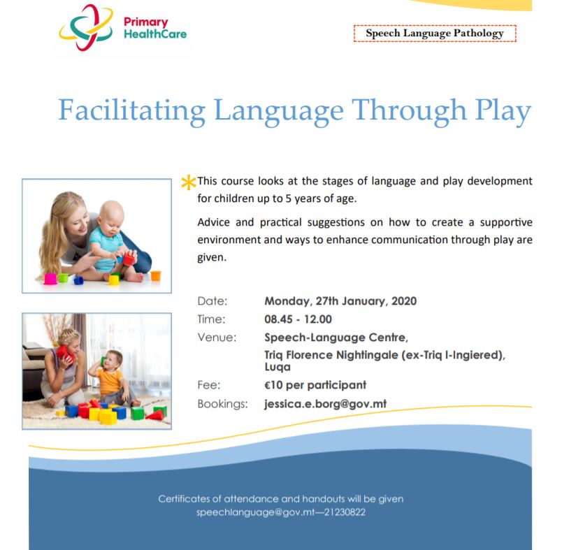 Facilitating Language Through Play & other courses This course will be repeated on Tuesday 4th February 2020. The full list of courses offered can be viewed below.