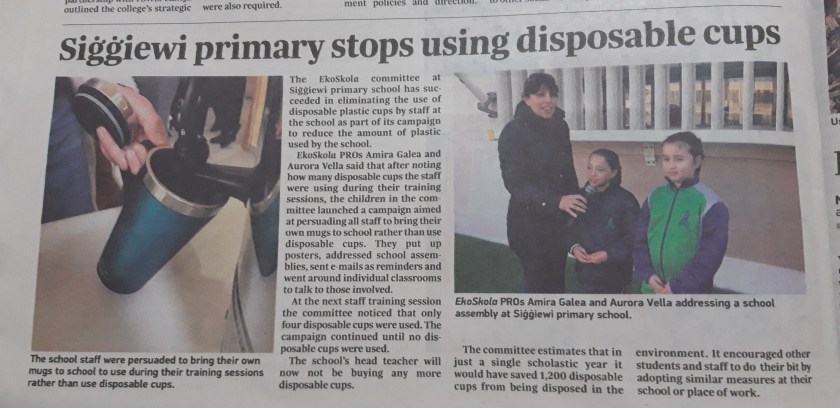 As part of the work being undertaken by our hard working Ekoskola Committee led by Ms Doreen Spiteri, our school has stopped using disposable cups during Staff Meetings and Seminars. Read the full report by following this link.