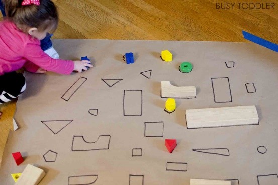 The picture below is an example of how to match shapes. You can also use different shapes from the ones in the picture.