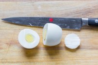 Tip: If you have trouble peeling eggs, try peeling under a slow stream of water. Very fresh eggs do not peel easily so I usually boil a few extra eggs to be on the safe side.