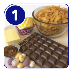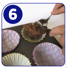 Place the paper cupcake cases into the muffin tray. Ask the children to count the cupcake cases while putting them in the muffin tray. Help the children spoon some chocolate cornflakes mixture into each case.
