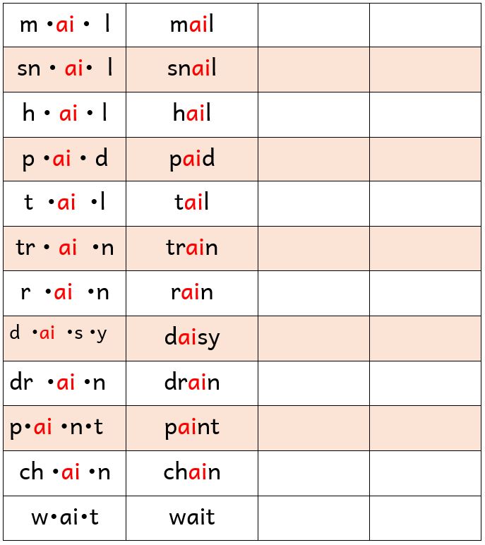 Practice how to read and write words with ai sounds