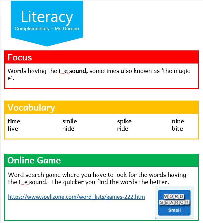 Complementary Education No. 8 Link for online game: https://www.spellzone.com/word_lists/games-222.htm Link for video: