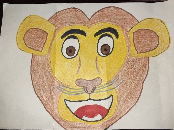 - Start by drawing the face of a lion, big enough to cover a cereal box, on a piece of paper. If you find it difficult to draw the lion’s face you can print one and ask your child to colour it instead.
