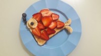 - Assemble the chopped fruit on the toast to make animal faces. This is a fun way to encourage fussy eaters to eat fruit.