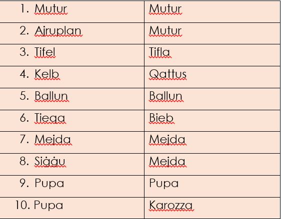 - Kif it-tfal jisimgħu ż-żewġ kelmiet, staqsiehom jekk il-kliem li għadhom kemm semgħu, humiex l-istess jew differenti.