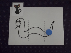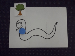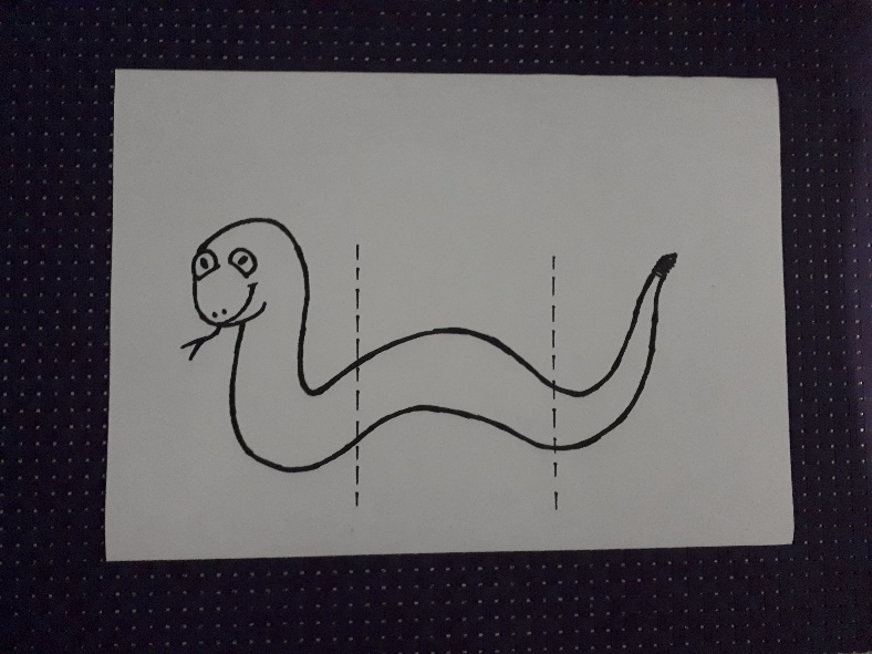 - Spjega u ddiskuti mat-tifel jew tifla li kelma hi magħmula minn 3 partijiet: il-bidu, in-nofs u l-aħħar. Uri s-serp u spjega li dan is-serp huwa bħall-kliem: maqsum fi tlieta. Ras is-serp huwa l-bidu. Żaqq is-serp huwa n-nofs. Waqt li denb is-serp huwa l-aħħar.