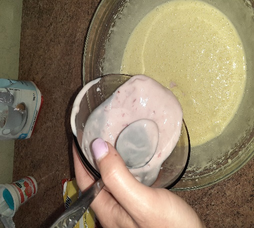 - While still whisking add a cup of yogurt and a cup of oil.