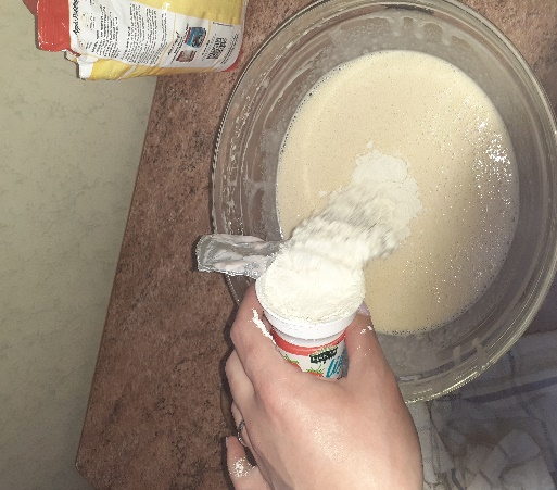 - Using a spatula fold the 3 cups of self-raising flour into the batter.