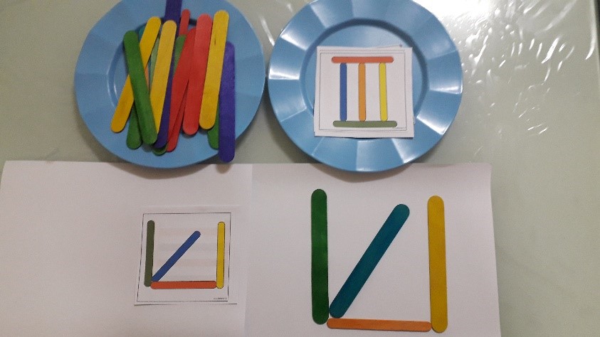 - Encourage your child to copy the pattern on the card. (As indicated in the picture).