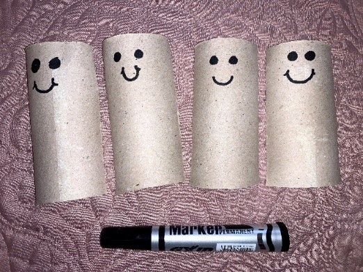 2. Draw on the worms’ faces using a marker, as indicated in the picture. You can use googly eyes for the eyes.