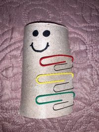 4. Ask your child to start placing the paper clips on the worms’ bodies. They can alternate colours and size. Encourage them to count the paper clips and say the number out loud each time they place one on the worm’s body.