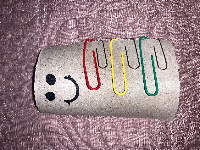 3. Tell your child that now you are going to place the paper clips of the worms. Take some paper clips of different sizes and clours and ask your child to count them out loud. You can take as many paper clips as you like, depending on your child’s ability.