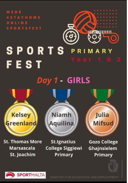 Congratulations! A big well done to our year 2 student Niamh Aquilina, who placed second on Day 1, in the online Sports Fest organised by MEDE and SportMalta.
