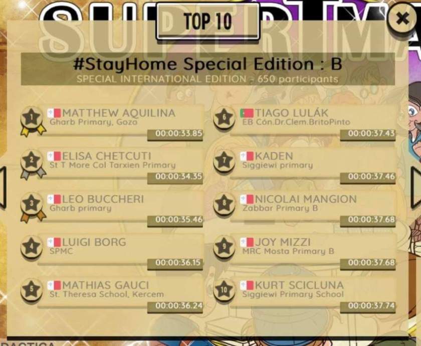 Well Done! A big WELL DONE to Kaden Camilleri (Year 5.1) and Kurt Scicluna (Year 4.2) who placed 7th and 10th respectively from 650 participants in the SuperTmatik Special International Edition.