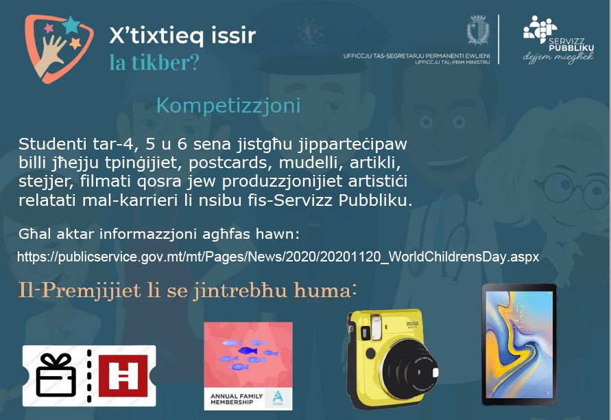 Kompetizzjoni Għal aktar informazzjoni agħfas hawn https://publicservice.gov.mt/mt/Pages/News/2020/20201120_WorldChildrensDay.aspx