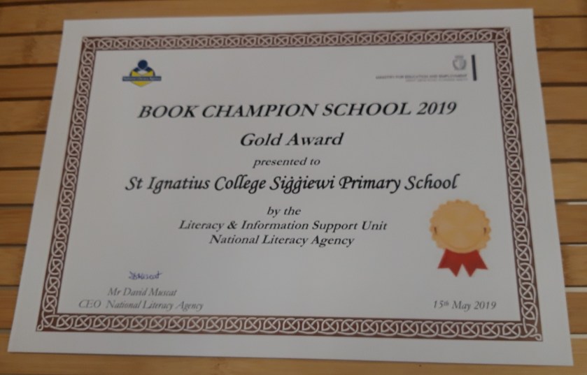 L-iskola Primarja Siġġiewi ngħatat il-Gold Award bħala Book Champion School għat-tielet sena konsekuttiva.  Dan l-award ġie mogħti lill-iskola mill-Aġenzija tal-Litteriżmu għall-impenn sħiħ tal-iskola fil-qasam tal-qari, speċjalment għall-mod ta’ kif nippromwovu l-qari permezz ta’ attivitajiet diversi fosthom il-Library Week.