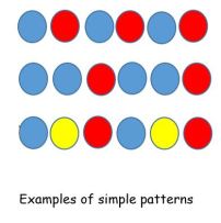 - Create a repeated pattern: attach pegs to cardboard creating a pattern ex. 1 yellow, 1 blue, 1 yellow, 1 blue etc. Ask the child to continue the pattern. Encourage the child to create a pattern himself. You can make it more challenging by increasing colours.
